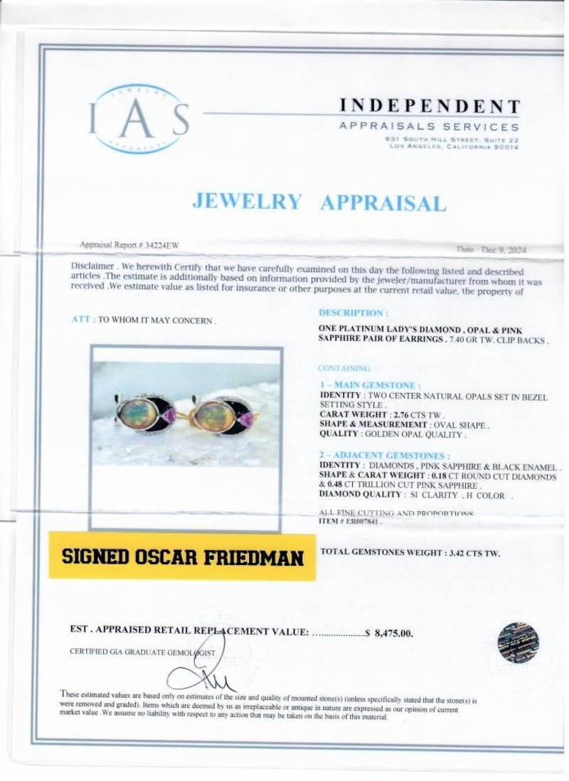 Ethereal Elegance: Opal, Pink Sapphire, and Diamond Platinum Earrings