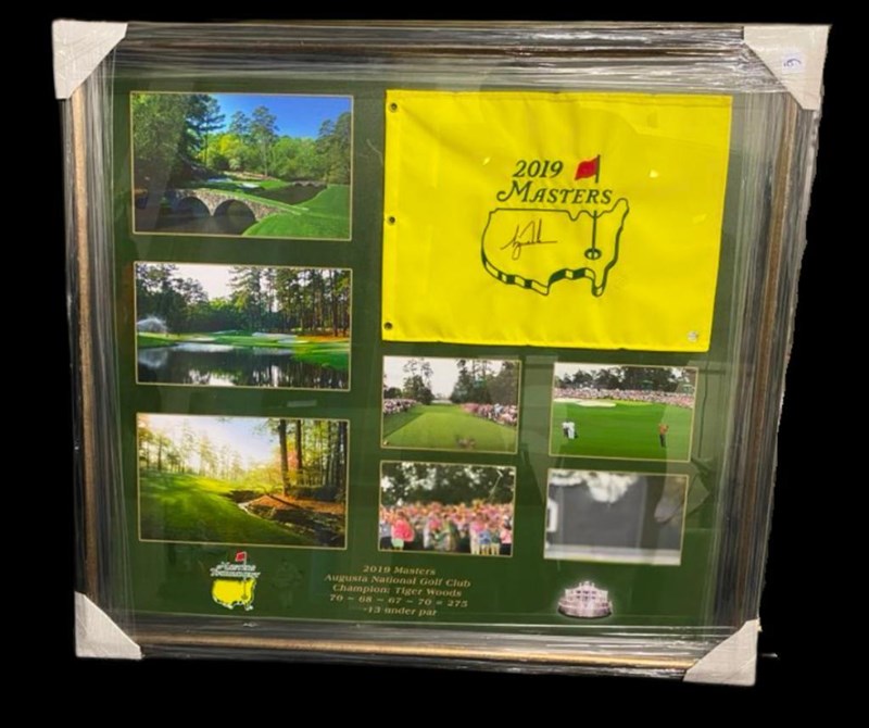 2019 MASTERS CHAMPION TIGER WOODS SIGNED FRAMED FLAG WITH COAEldrick Tont "Tiger" Woods (Born December 30, 1975) Is An American Professional Golfer. He Is Tied For First In Pga Tour Wins, Ranks Second In Men'S Major Championships, And Holds Numerous Golf Records. Woods Is Widely Regarded As One Of The Greatest Golfers Of All Time And Is One Of The Most Famous Athletes In Modern History. He Is An Inductee Of The World Golf Hall Of Fame.CROSS DOCK155544+32