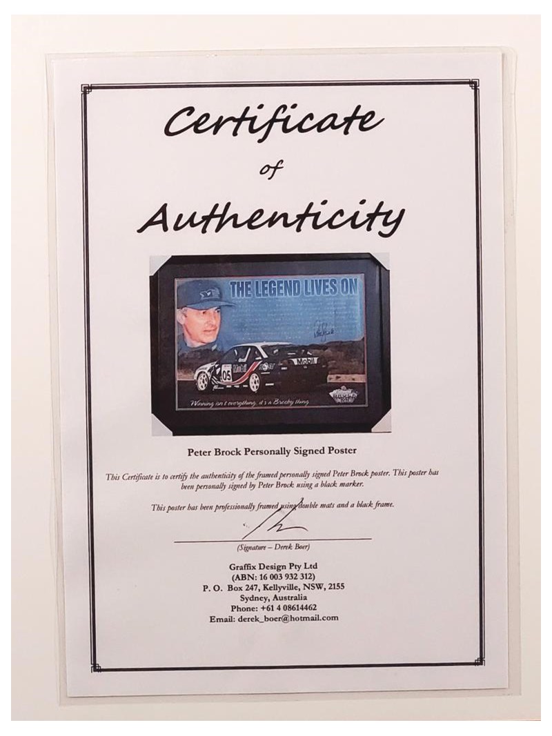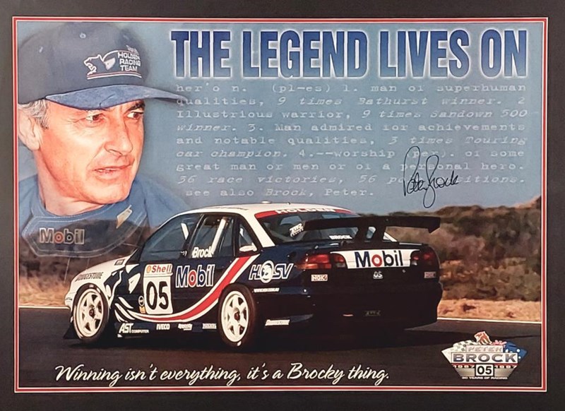 PETER BROCK "THE LEGEND LIVES ON" HANDSIGNED FRAMED PRINT