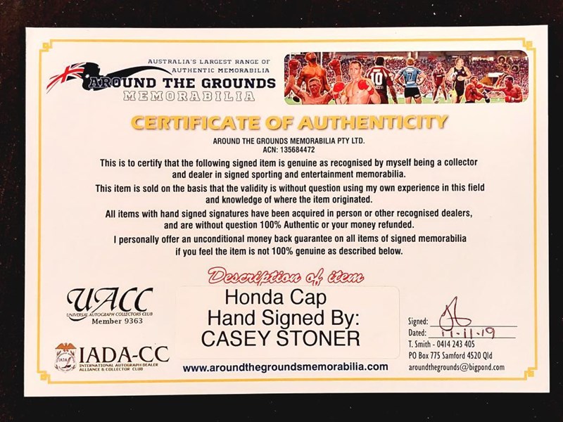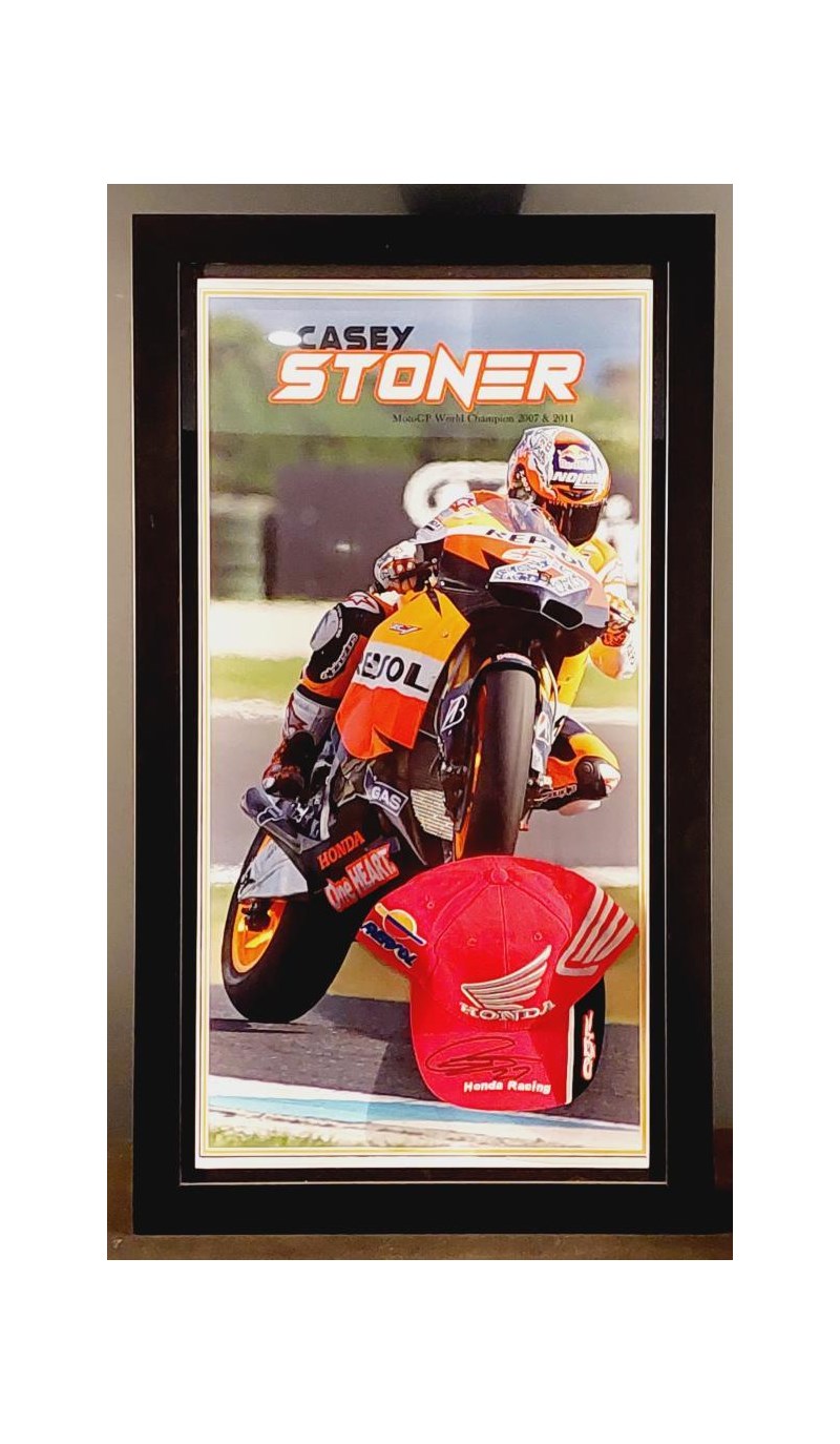 CASEY STONER HANDSIGNED CAP IN FRAMED DISPLAY