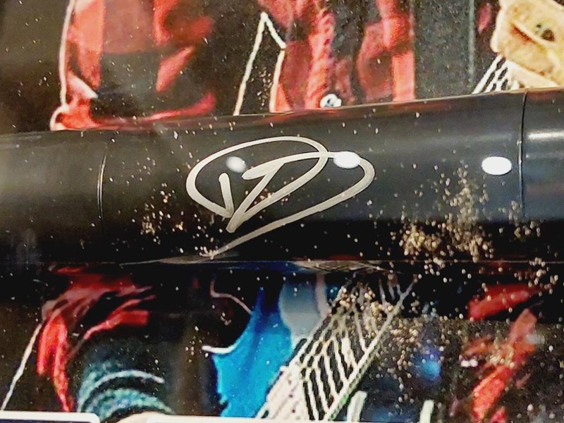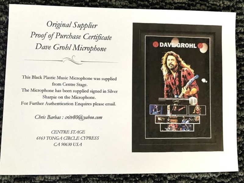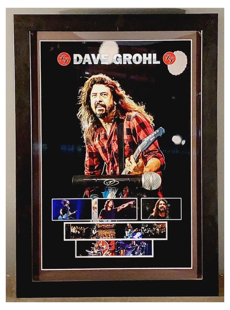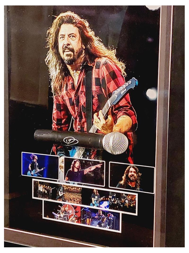 DAVE GROHL HANDSIGNED MICROPHONE IN FRAMED DISPLAY Size: 74cm x 53cm x 8cm Condition: Excellent - Refer To Images 155566+18