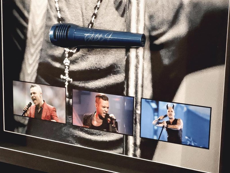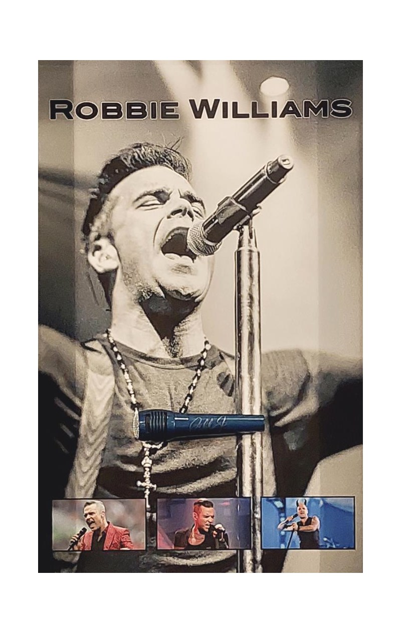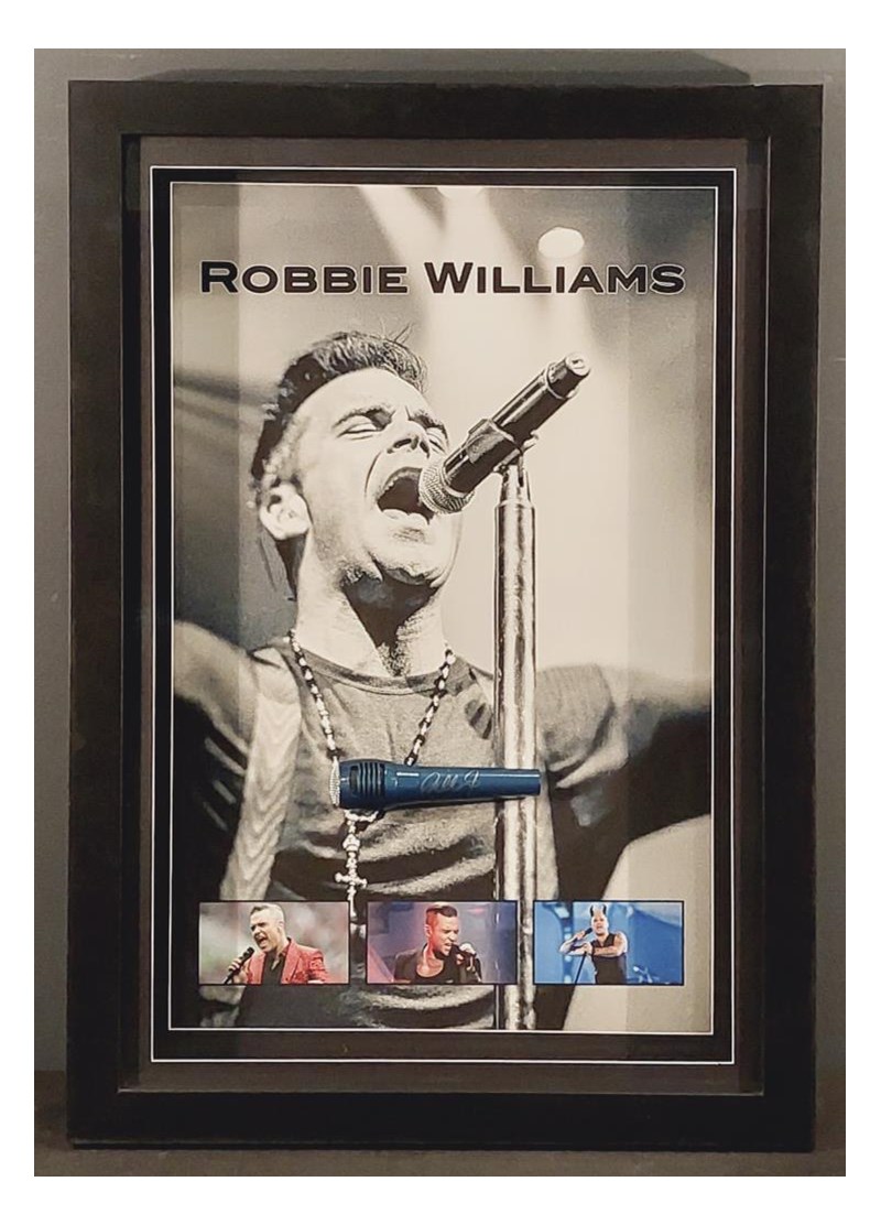 ROBBIE WILLIAMS HANDSIGNED MICROPHONE IN FRAMED DISPLAY Comes With Certificate Of Authenticity From Ama Size: 84cm x 54cm x 8cm Condition: Excellent - Refer To Images 155566+73