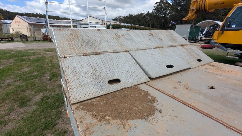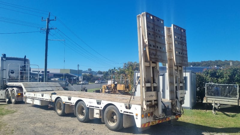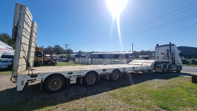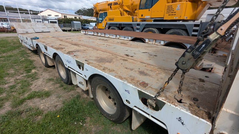 Description/Extras: Ramps, Petrol Motor Air Compressor (Flat Battery), Sherpa Winch, Side Tool Boxes (Missing Keys), Ramps With Pneumatic Rams, Split Deck, Oversize signs, Drop Axle. **At Time of Consigning the right Hand Side Deck was not Widening**