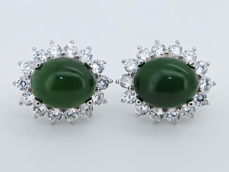 NATURAL BURMESE JADE EARRINGS ON 925 SILVER - WITH CERTIFICATE