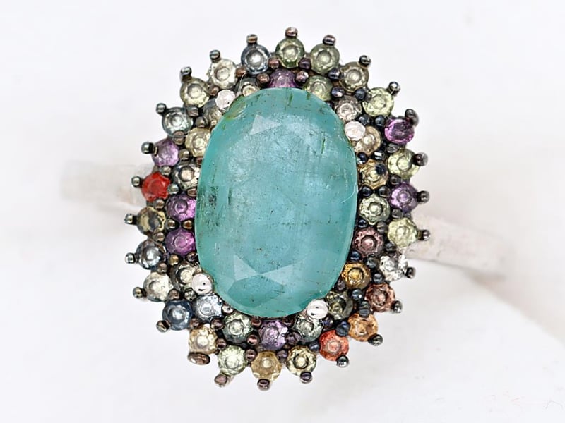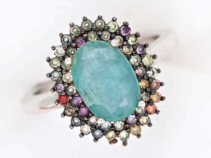 NATURAL ZAMBIAN EMERALD & SRI LANKAN SAPPHIRE (UNTREATED) RING ON 925 SILVER - WITH CERTIFICATE