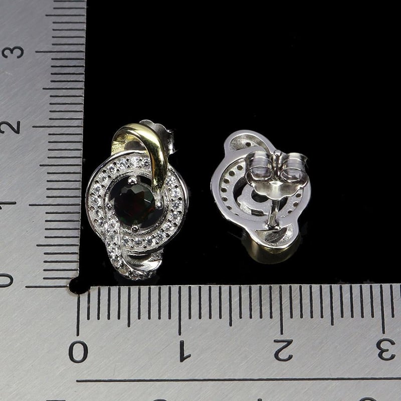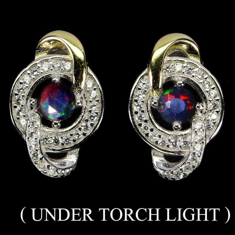 NATURAL RAINBOW FIRE OPAL EARRINGS Natural Rainbow Fire Opal Earrings. Made In Solid Sterling Silver And Plated In14K White And Yellow Gold. Features Natural Rainbow Black Opals And Sparkling Czs. Earrings Measure 15.0 X 10.0 Mm. Condition: Good - Refer Images 0 488375+1