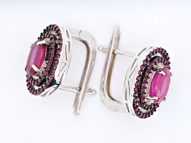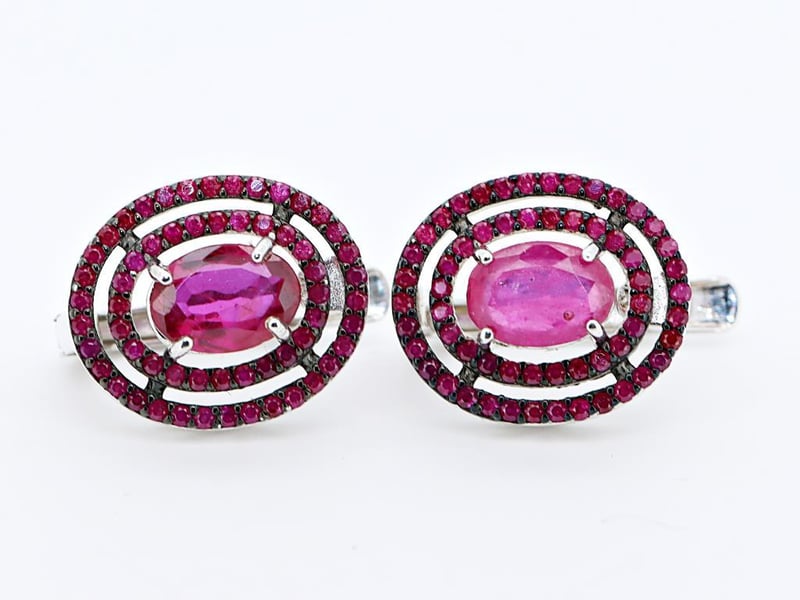 NATURAL BURMESE RUBY EARRINGS ON 925 SILVER - WITH CERTIFICATE