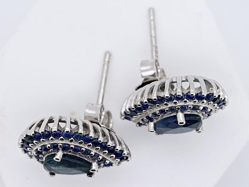 NATURAL SRI LANKAN SAPPHIRE EARRINGS ON 925 SILVER - WITH CERTIFICATE