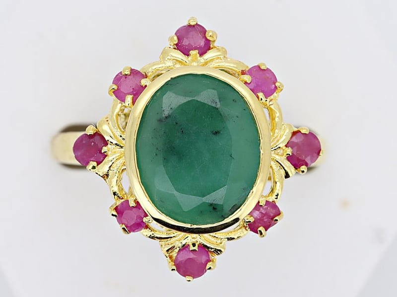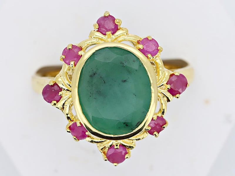 NATURAL ZAMBIAN EMERALD & BURMESE RUBY (UNHEATED) RING ON 925 SILVER - WITH CERTIFICATE