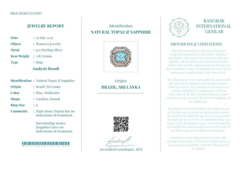 Comments : Main Stone (Topaz) Has No Indications Of Treatment.