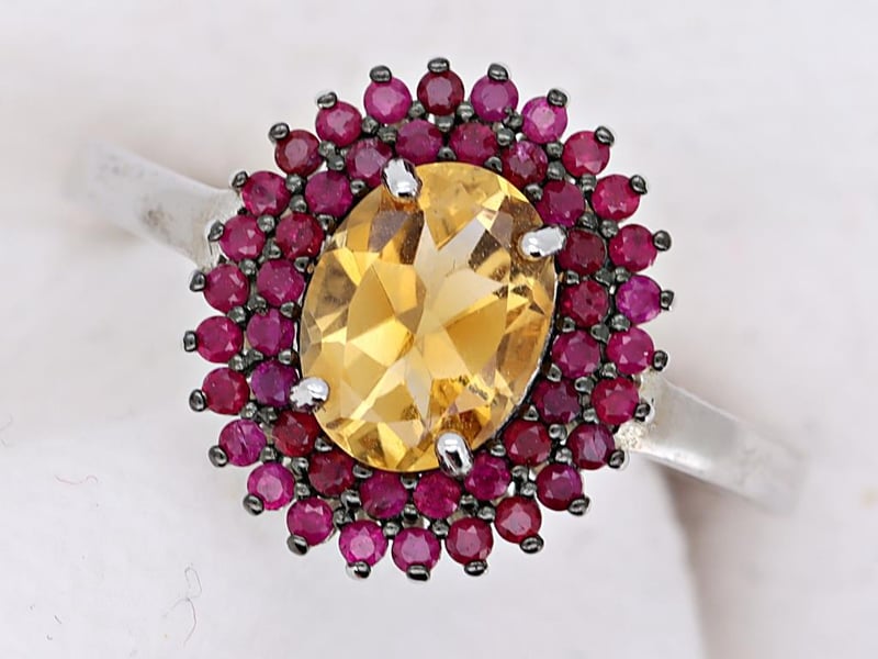 NATURAL BERYL & RUBY RING ON 925 SILVER - WITH CERTIFICATE