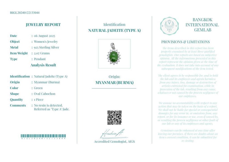 NATURAL BURMESE JADE PENDANT ON 925 SILVER - WITH CERTIFICATE