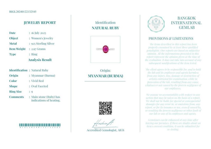Comments : Main Stone (Ruby) Has Indications Of Heating.
