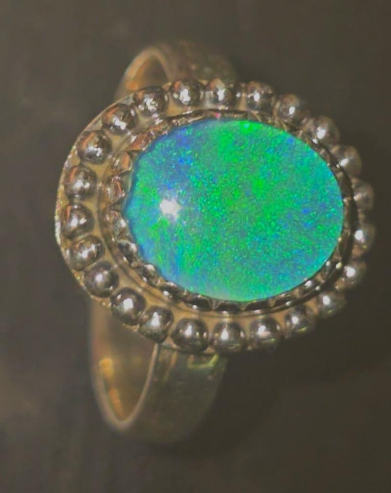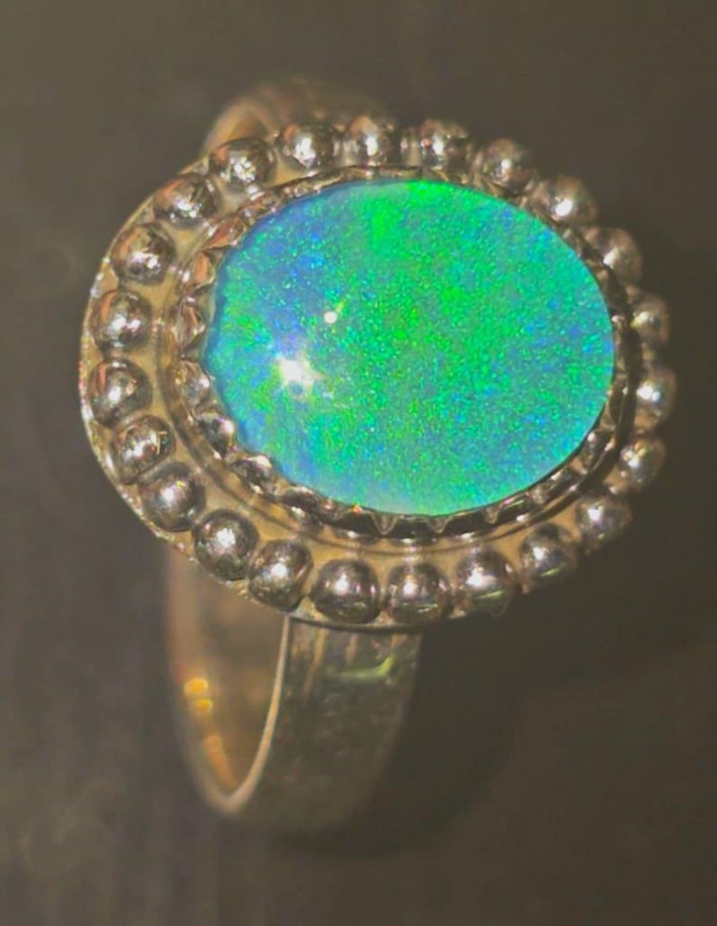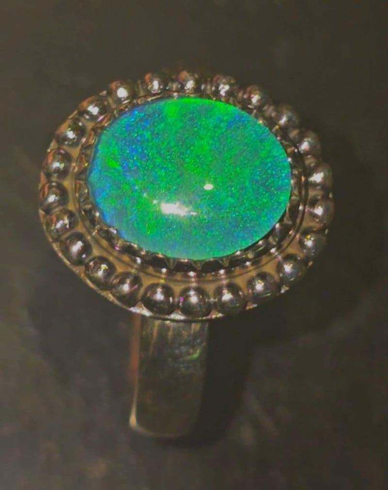 20.7 TCW STERLING SILVER AND LIGHTNING RIDGE CRYSTAL OPAL RING
