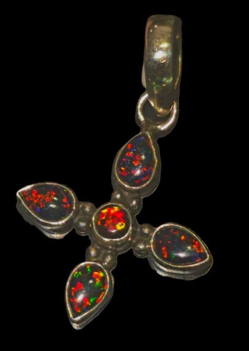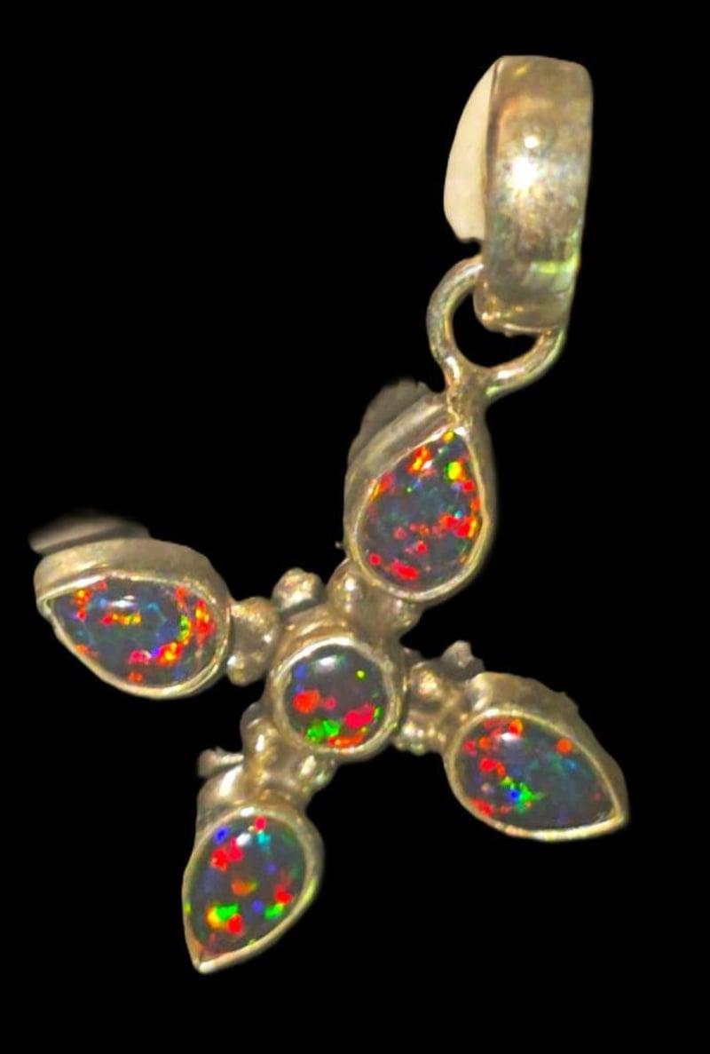 16.4 CARATS STERLING SILVER AND OPAL CROSS PENDANT