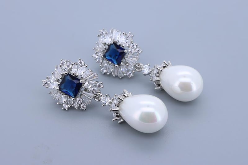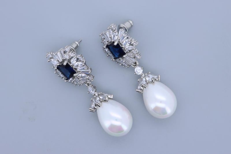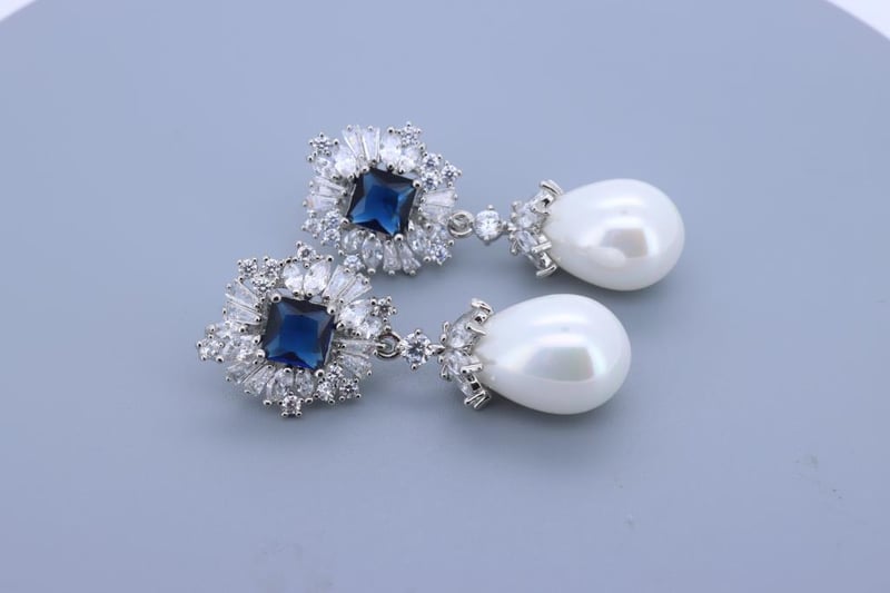 925 SILVER EARRINGS - BLUE & WHITE