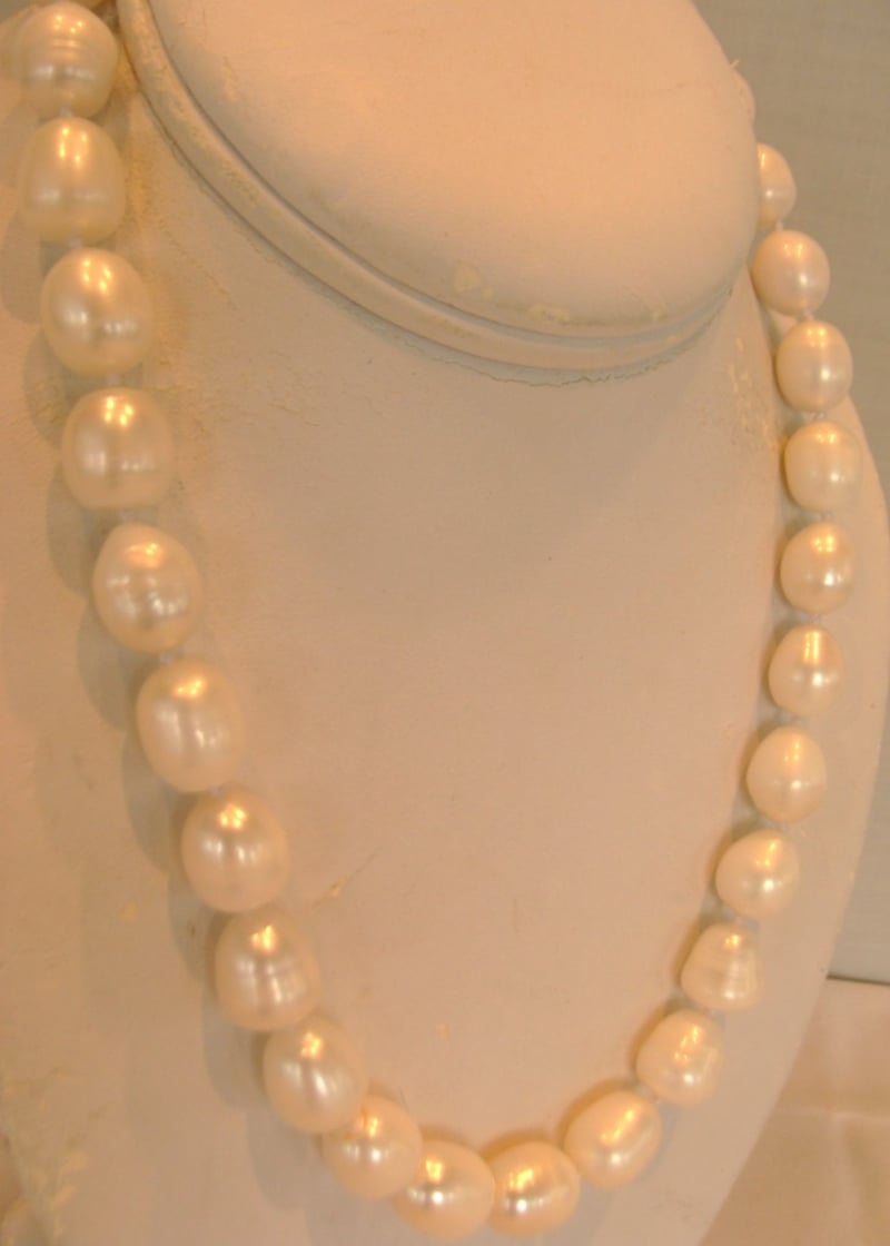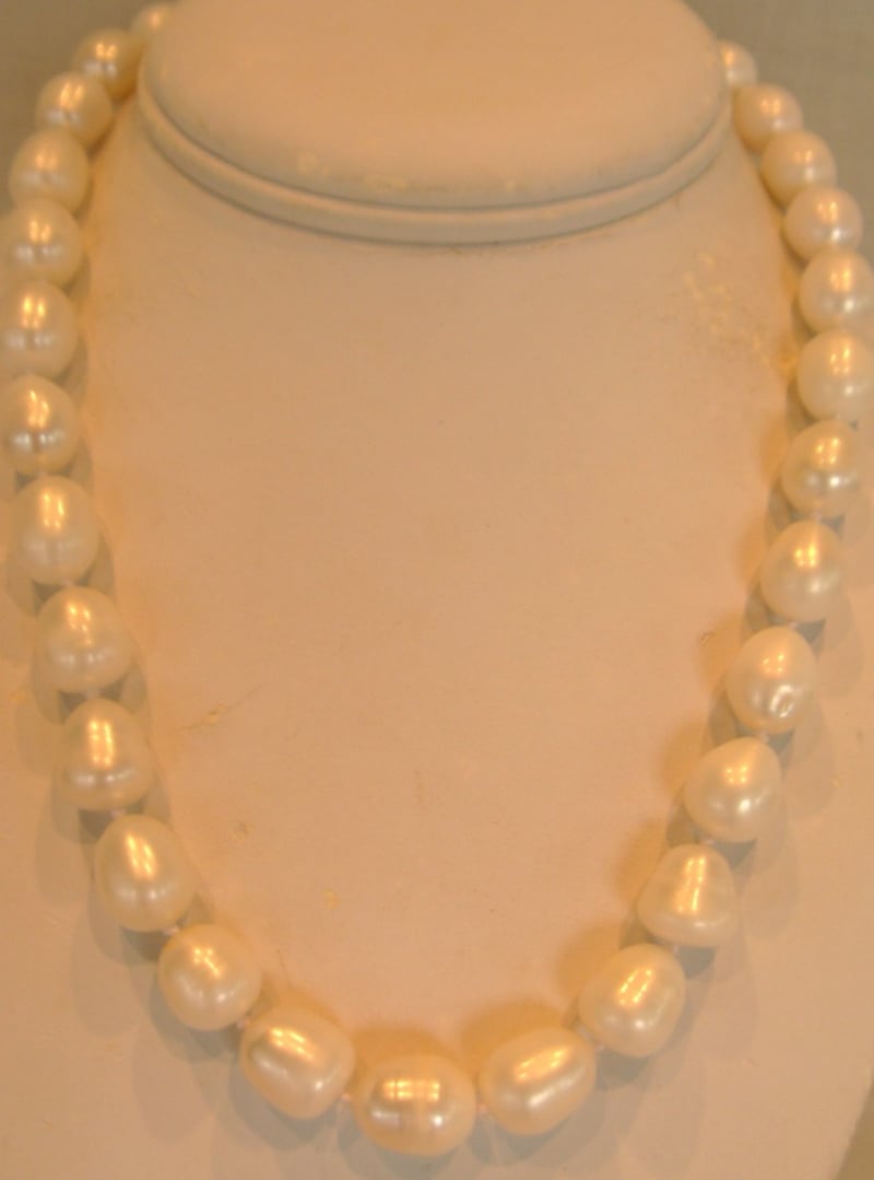 NATURAL SOUTH SEA BAROQUE PEARL NECKLACE 32 HAND KNOTTED PEARLS