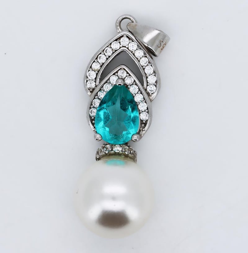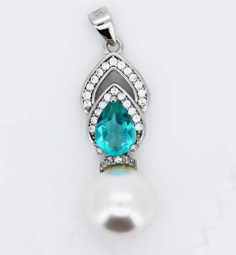 NATURAL APATITE & CULTURED FRESHWATER PEARL PENDANT ON 925 SILVER - WITH CERTIFICATE