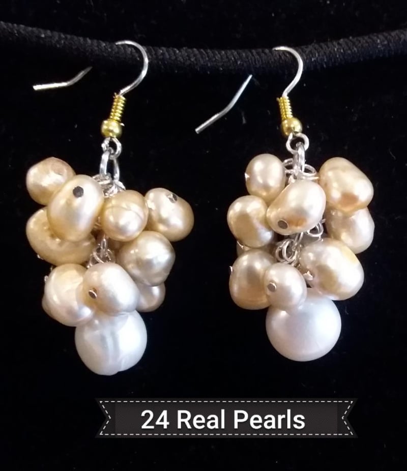FRESHWATER PEARL GRAPE STYLE DROP EARRINGS