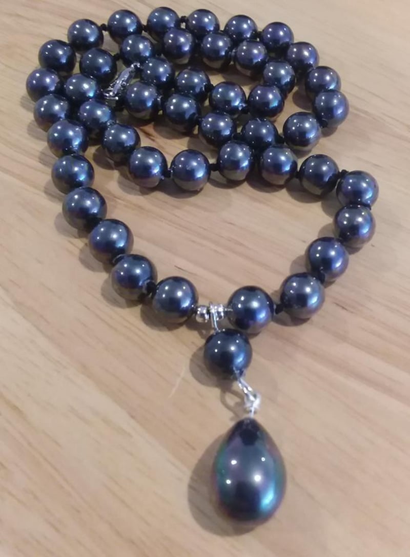ATAHITIAN RAINBOW BLACK SOUTH SEA SHELL PEARL PENDANT NECKLACE Condition: Good - Refer Images 0162996+14FC