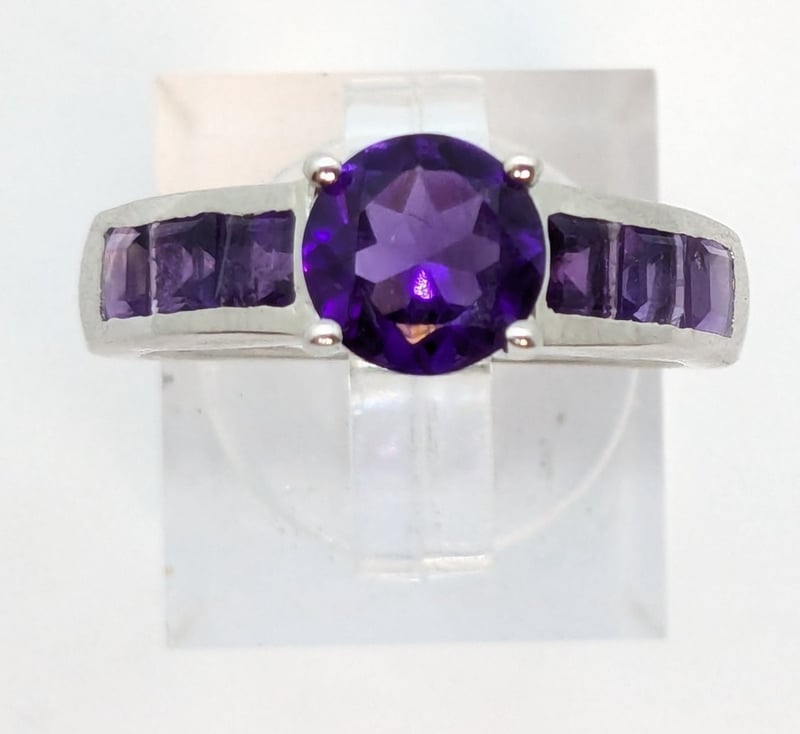 Rings Feature Amethyst Gems With Round Brilliant, Round Oval And Pear Cuts.