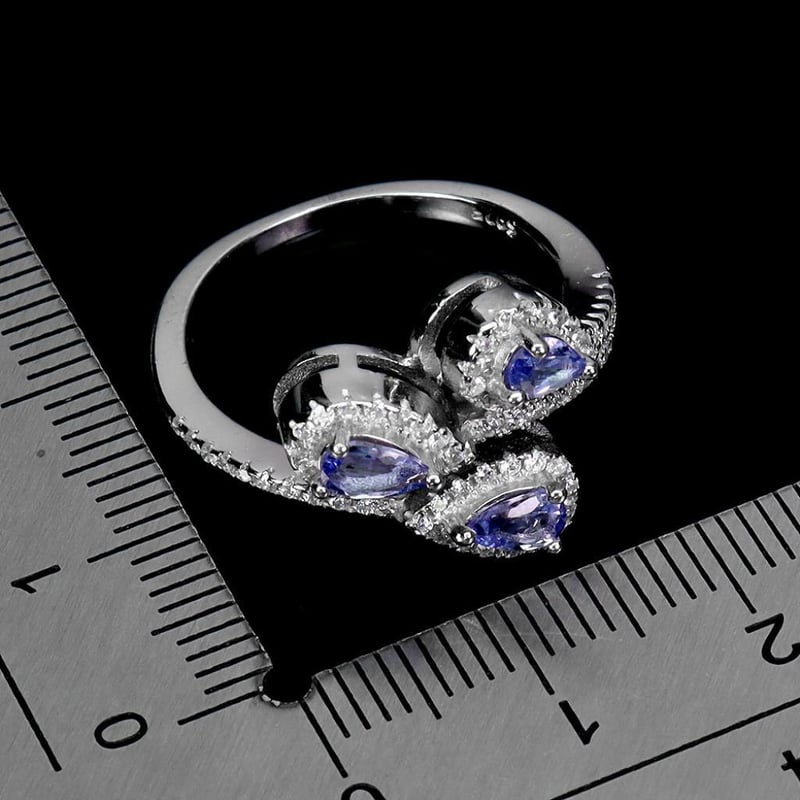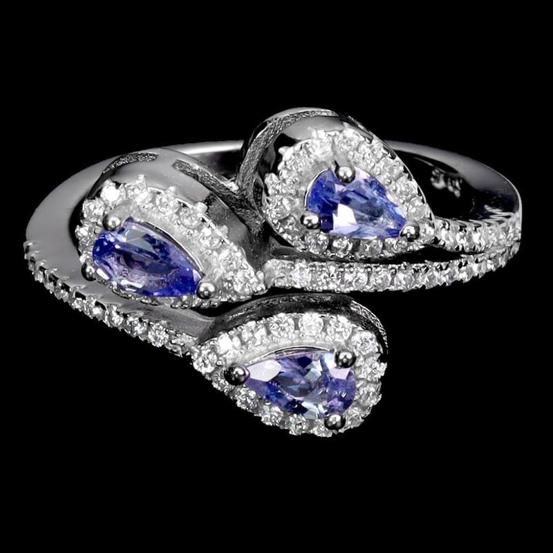 Natural Tanzanite Ring. Made In Solid Sterling Silver And Plated In 14K White Gold. Features Natural Violetish Blue Tanzanite'S And Sparkling Czs. Ring Size 9