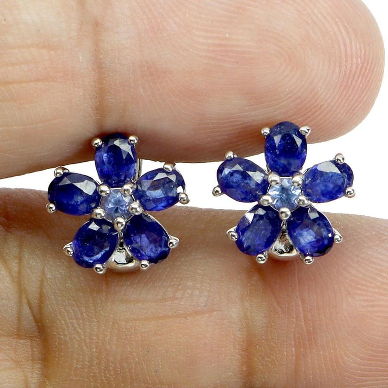 Natural Sapphire & Tanzanite Earrings. Made Ins Solid Sterling Silver And Plated In14K White Gold. Features Natural Blue Sapphires And Natural Violtish Blue Tanzanite. Earrings Measure 10X10Mm
