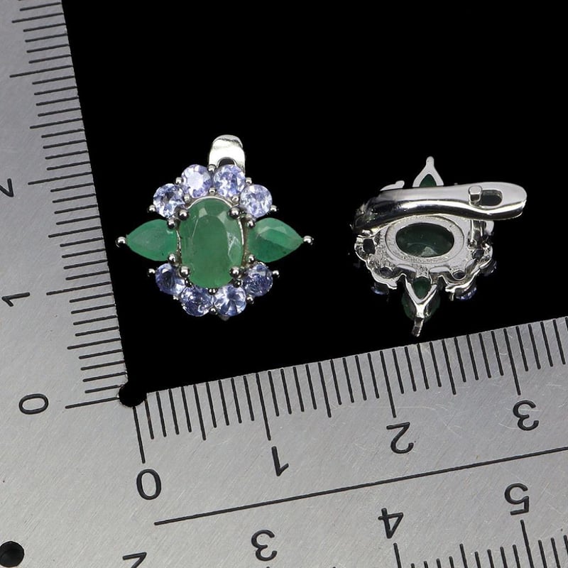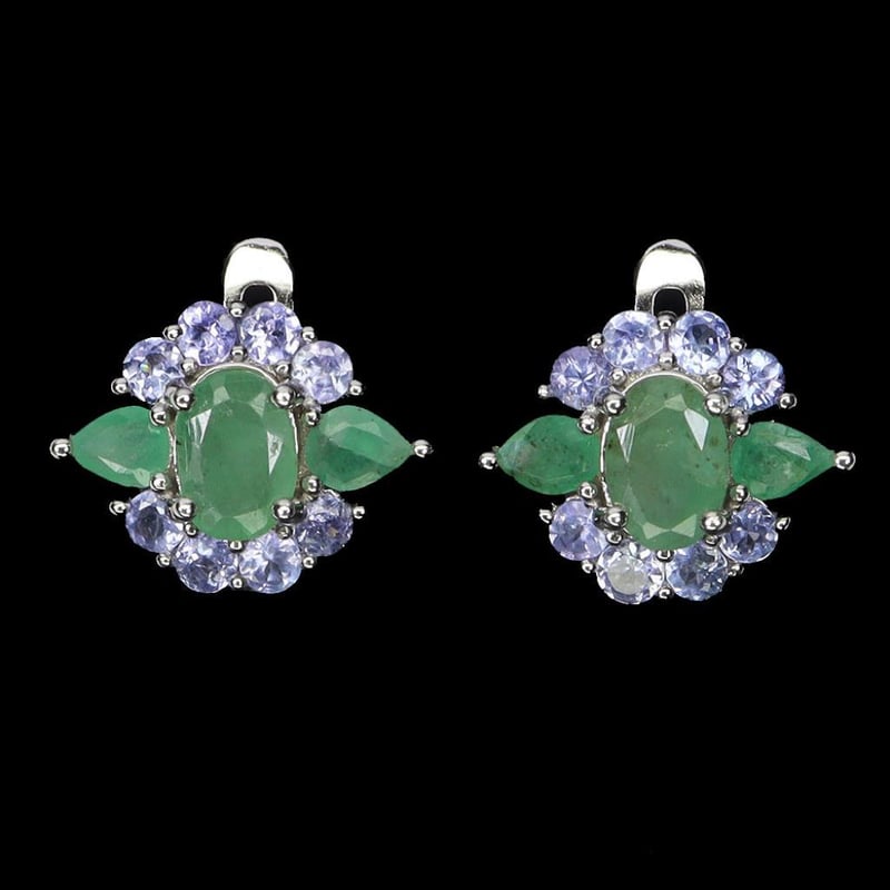 Natural Emerald & Tanzanite Earrings. Made In Solid Sterling Silver And Plated In14K White Gold. Features Natural Violtish Blue Tanzanite'S And Natural Green Emeralds. Earrings Measure 15X12Mm