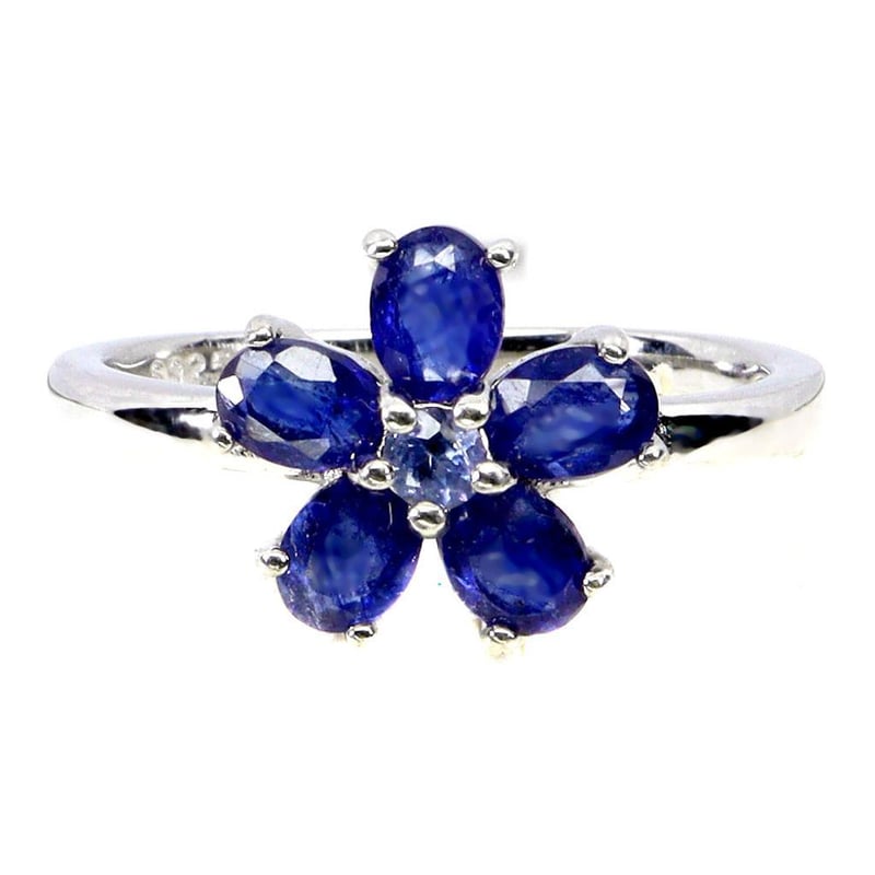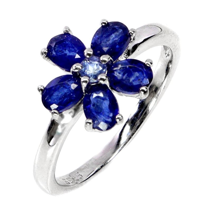 Natural Sapphire & Tanzanite Ring. Made In Solid Sterling Silver And Plated In14K White Gold. Features Natural Blue Sapphires And Natural Violtish Blue Tanzanite. Ring Size 7