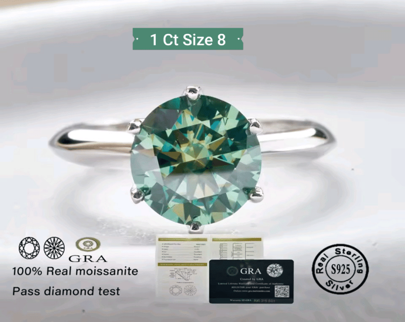 GRA CERTIFIED 1 CT MOISSANITE ENGAGEMENT RING SIZE 8 S925
