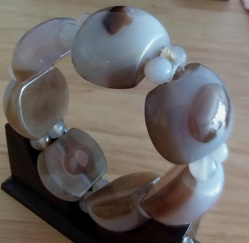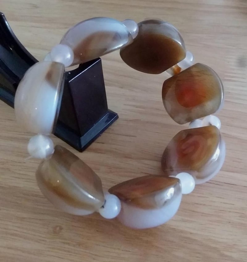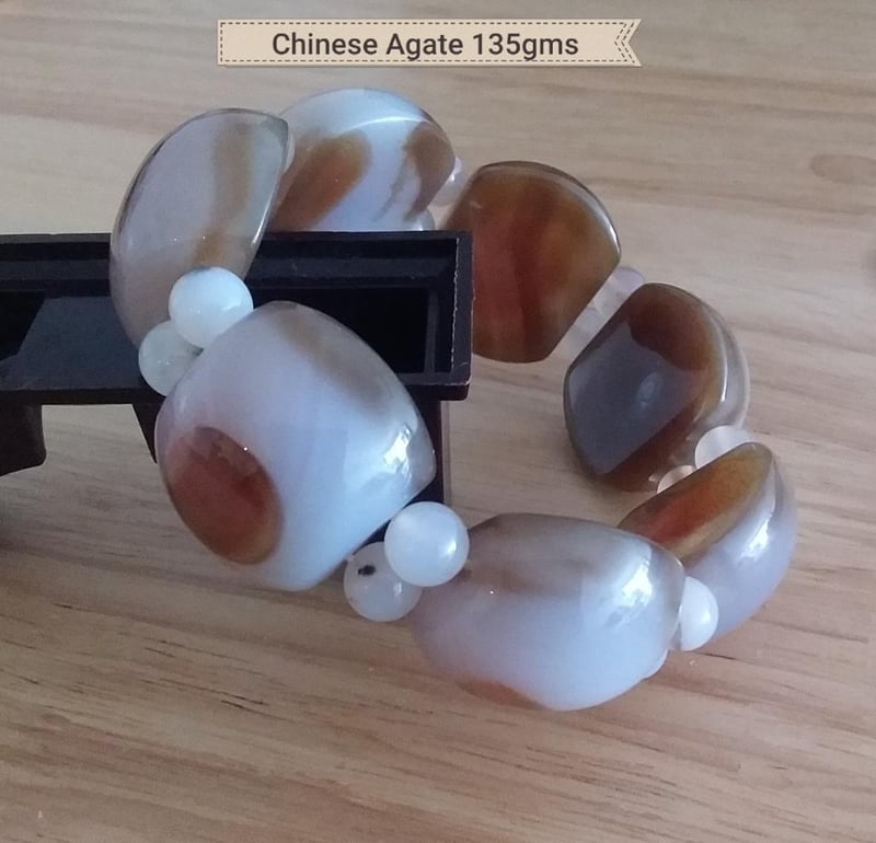 CHUNKY CHINESE AGATE UNISEX STRETCH BRACELET 135 GMS