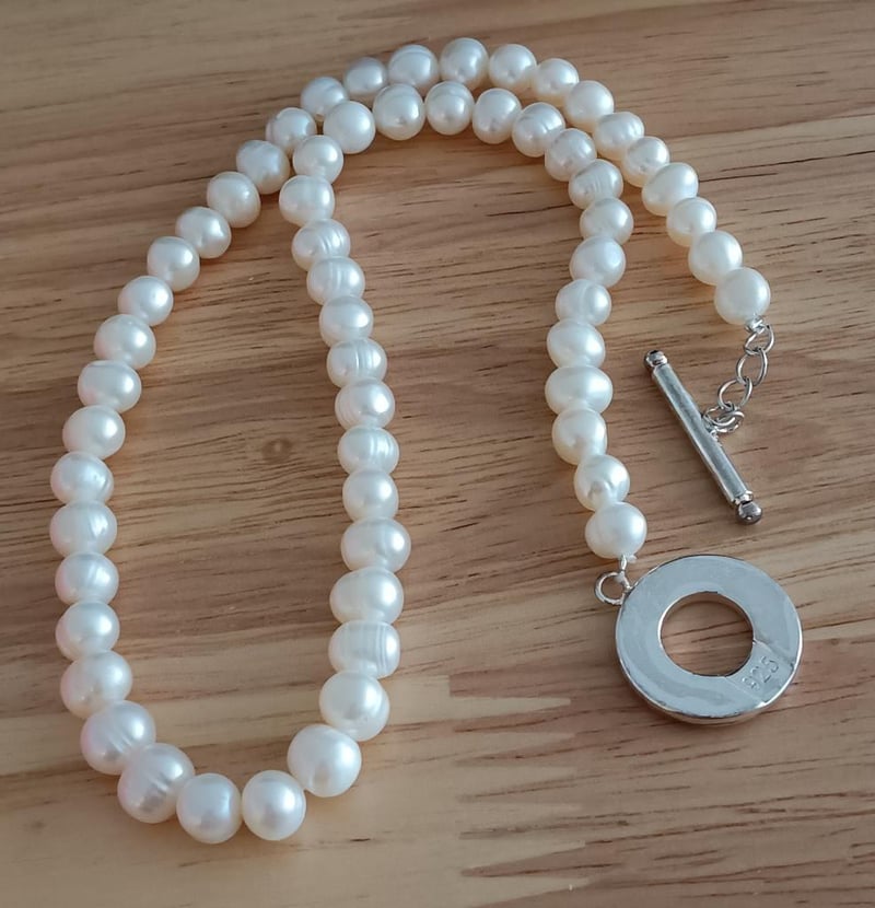 WHITE FRESHWATER PEARL 8MM NECKLACE WITH SILVER CLASP Condition: Good - Refer Images 0163019+8FC
