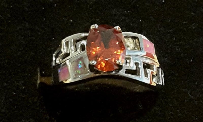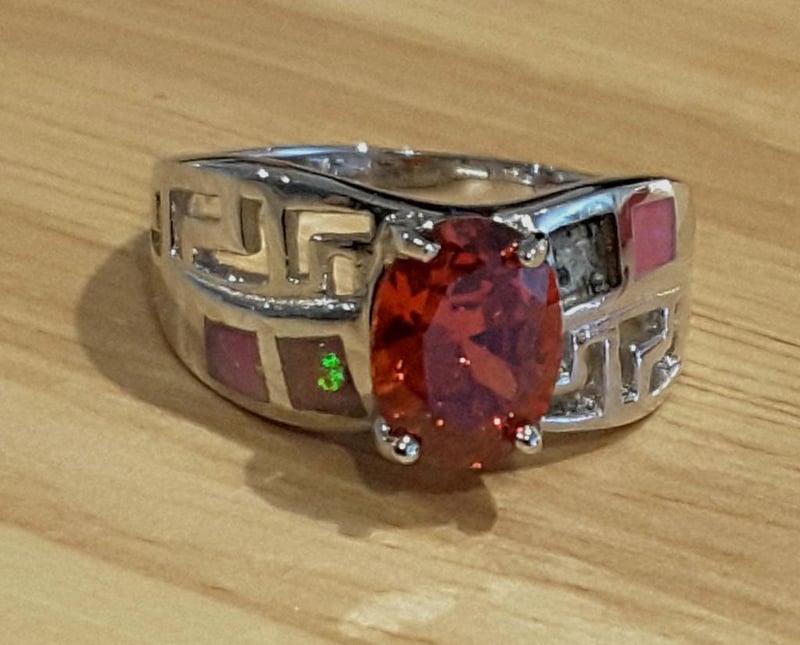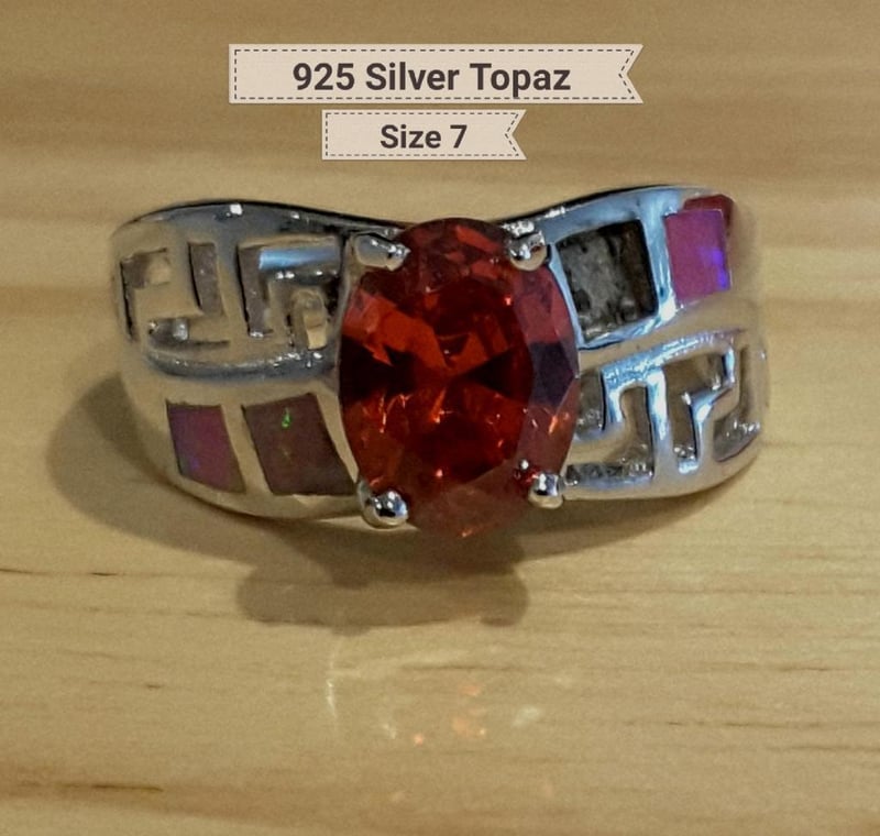 925 SILVER PINK CREATED OPAL TOPAZ RING SIZE 7