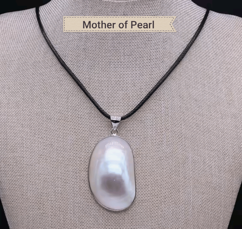 MOTHER OF PEARL PENDANT ON BLACK CORD