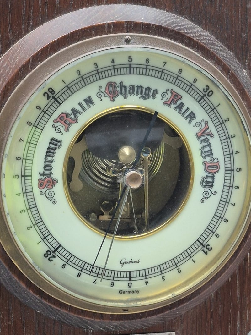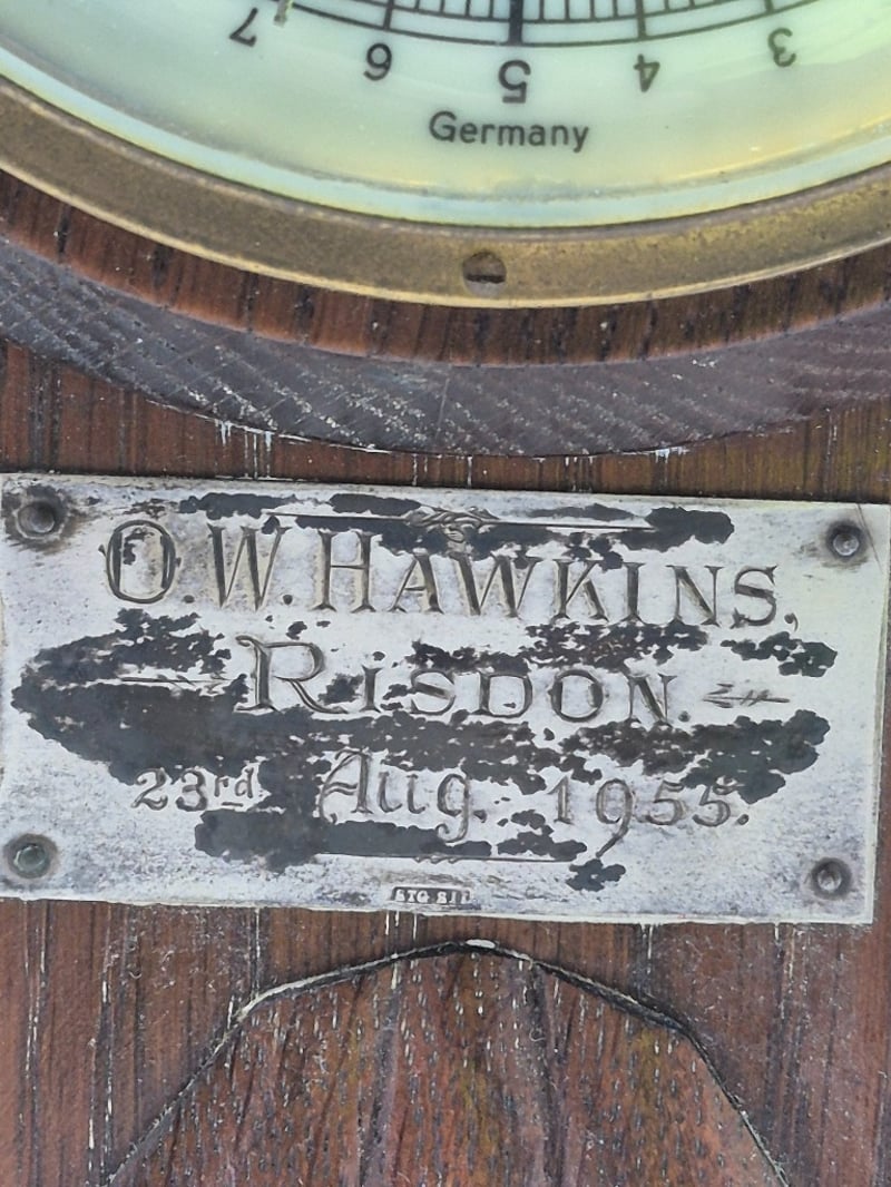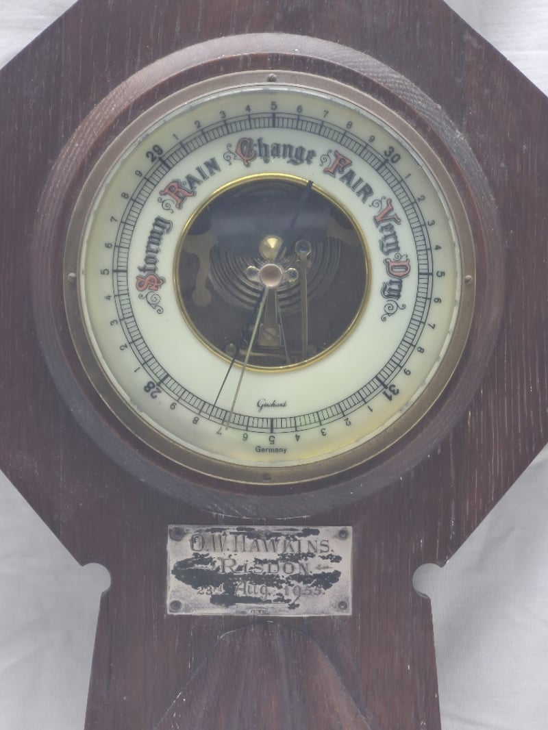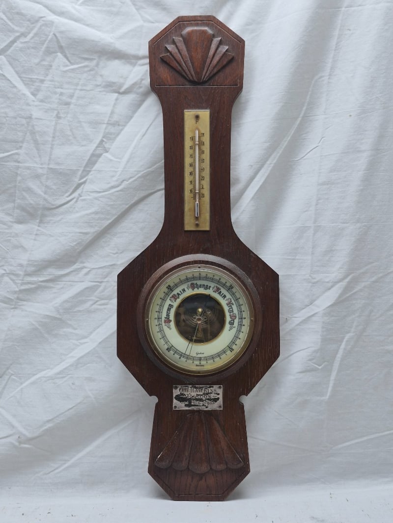 O.W. HAWKINS BANJO BAROMETER WITH THERMOMETER