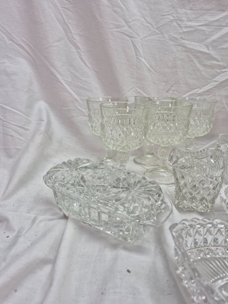 CRYSTAL GLASSWARE COLLECTIONFeaturing, Serving Bowls, Rectangular Butter Dishes With Lids, Cream Jugs, Sugar Bowls And MoreCondition: Good - Refer To Images587756+12