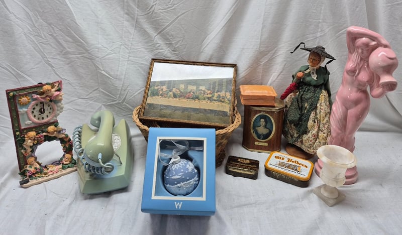 ROTARY TELEPHONE, DECORATIVE FIGURES, FAIRY CLOCK AND MORE