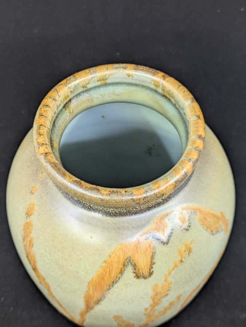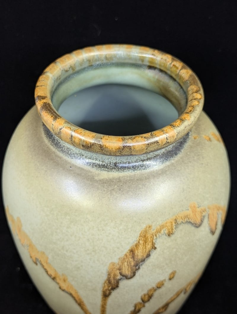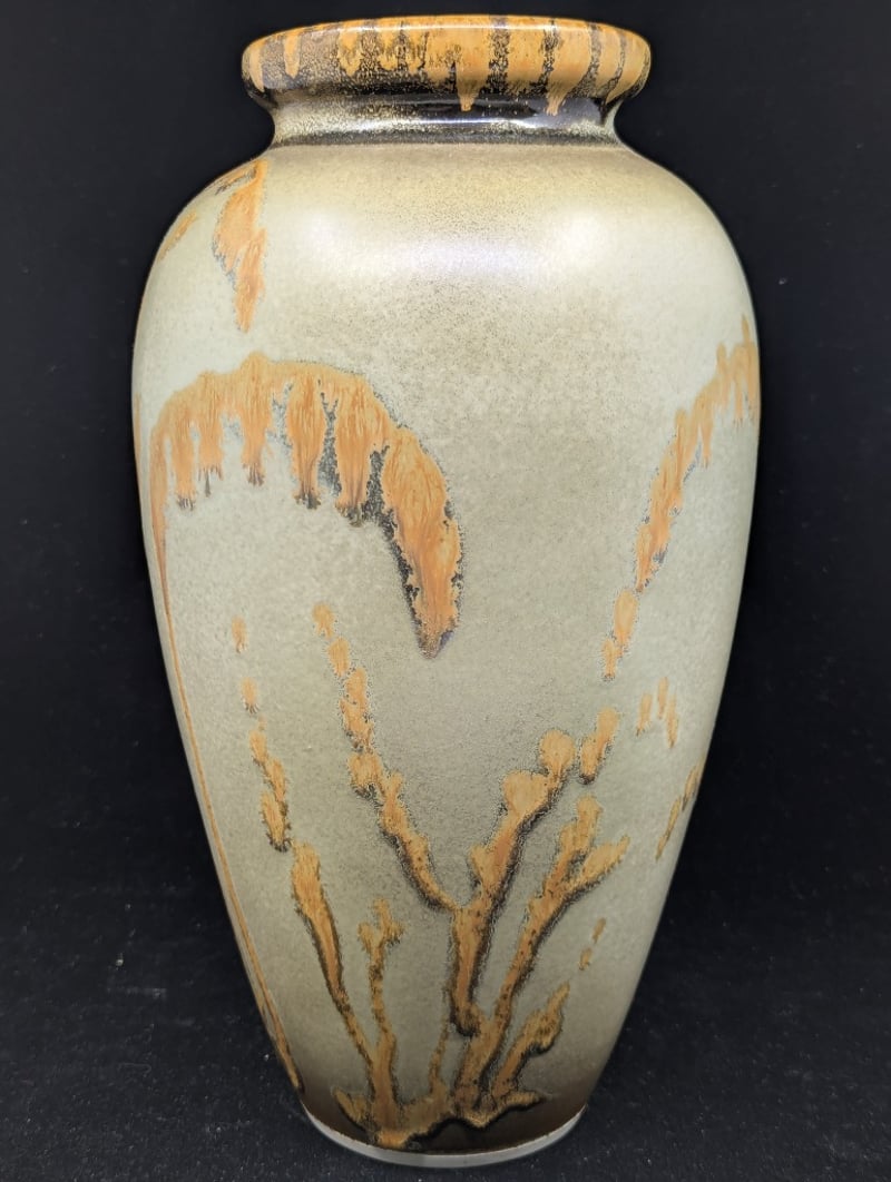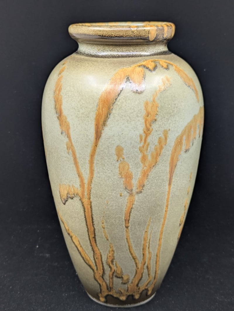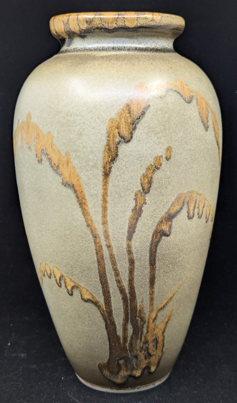 Vase Features Painted Grey Exterior With Wheat Style Imagery