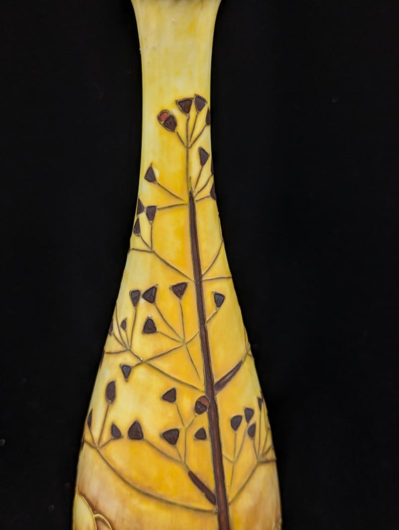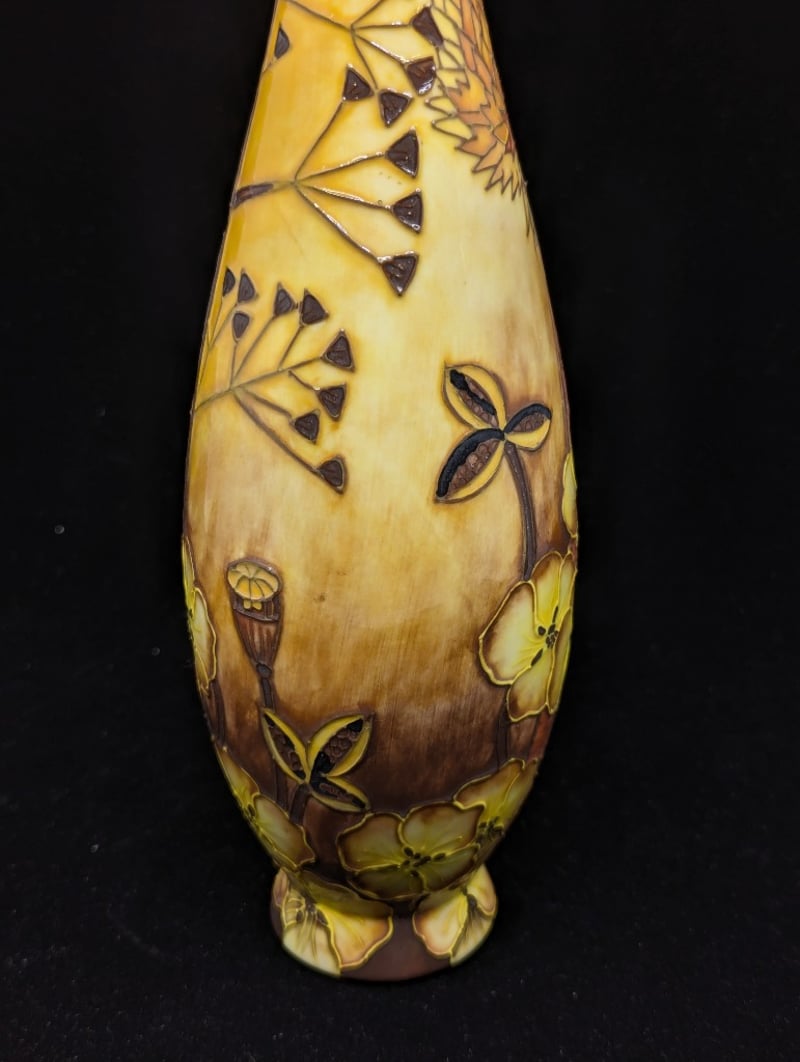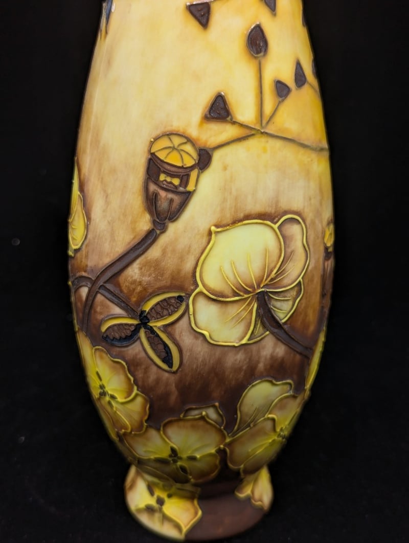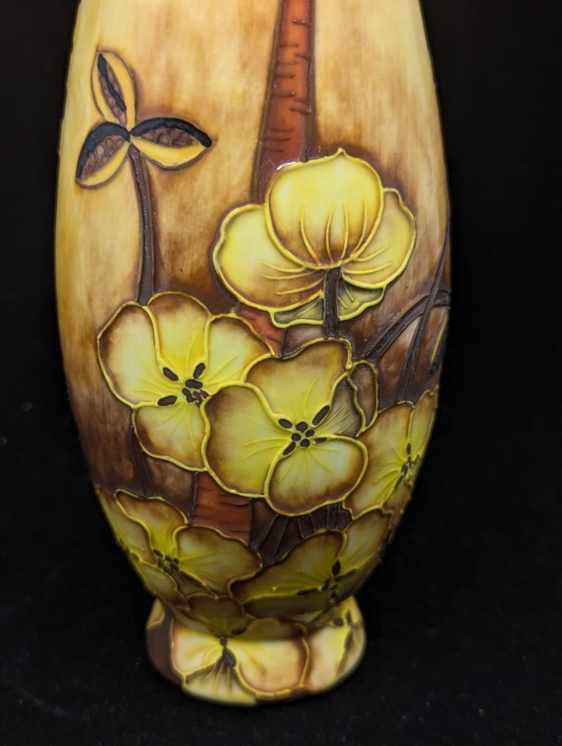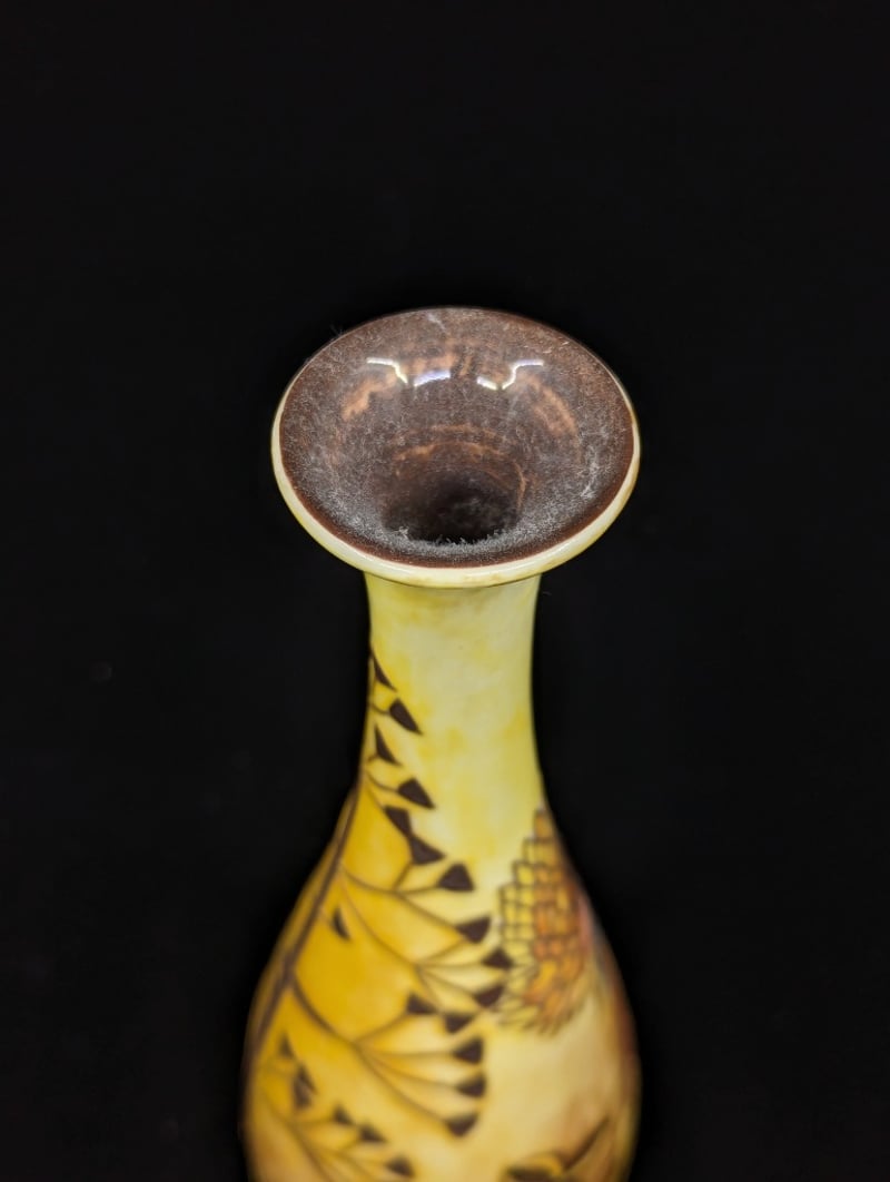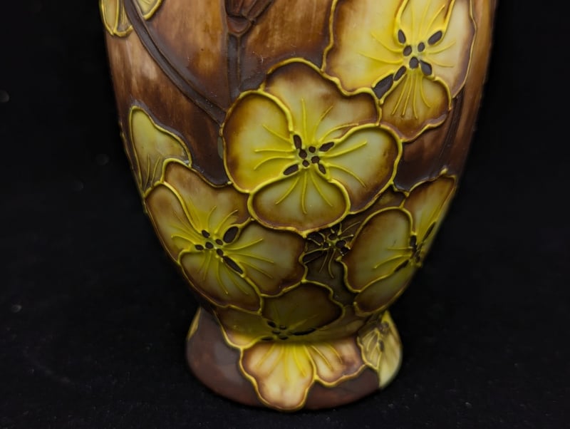 Vase Features Painted Exterior With Floral Imagery, Textured Design, Crown Stamp On Base Of Vase