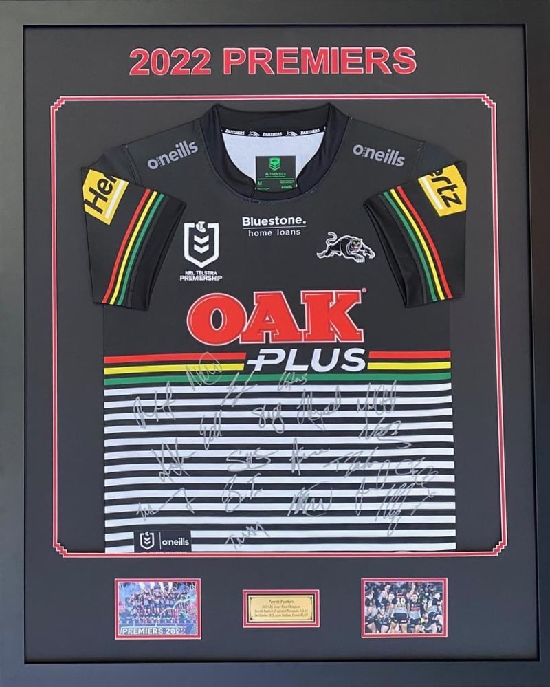 2022 PENRITH PANTHERS PERSONALLY SIGNED JERSEY "2022 NRL GRAND FINAL CHAMPIONS"