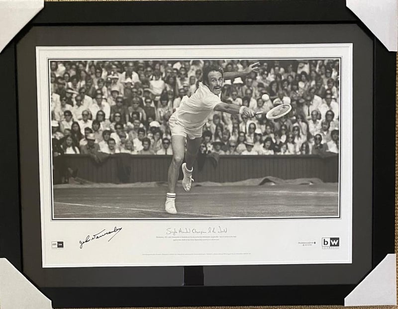 JOHN NEWCOMBE PERSONALLY SIGNED LICENSED LIMITED EDITION PRINT, 3RD TITLE WIMBLEDON TITLE AGAINST STAN SMITH Framed Using Double Mats And A Black Frame Hand Signed By John Newcombe Using A Black Marker. Limited Edition - Number 283/350Accompanied By A Certificate Of AuthenticityCondition: Good - Refer To Images488377+16