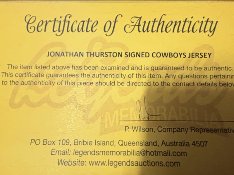 Jonathan Thurston Personally Signed North Queensland Cowboys Jersey. The Jersey Is Size L. The Item Is Accompanied By A Certificate Of Authenticity.