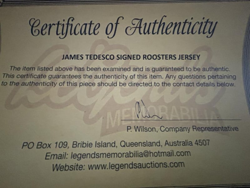 JAMES TEDESCO SIGNED ROOSTERS JERSEY