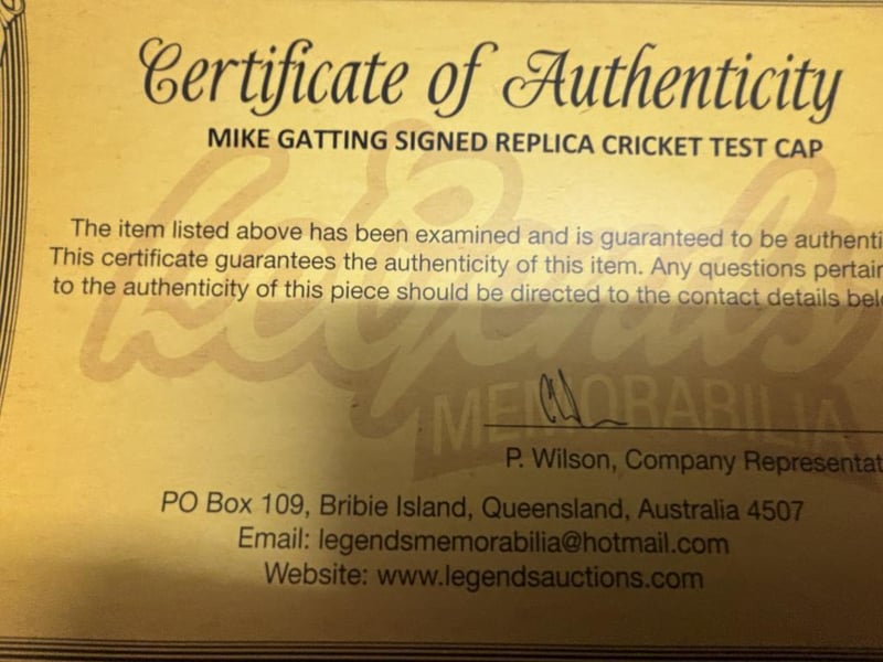 Mike Gatting Personally Signed Replica English Test Cricket Cap. The Item Is Accompanied By A Certificate Of Authenticity.
