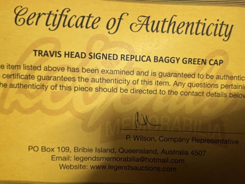 Travis Head Personally Signed Replica Baggy Green Cricket Cap. The Item Is Accompanied By A Certificate Of Authenticity.