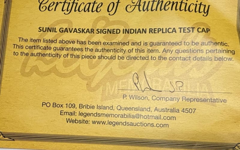Sunil Gavaskar Personally Signed Replica Indian Cricket Cap. The Item Is Accompanied By A Certificate Of Authenticity.