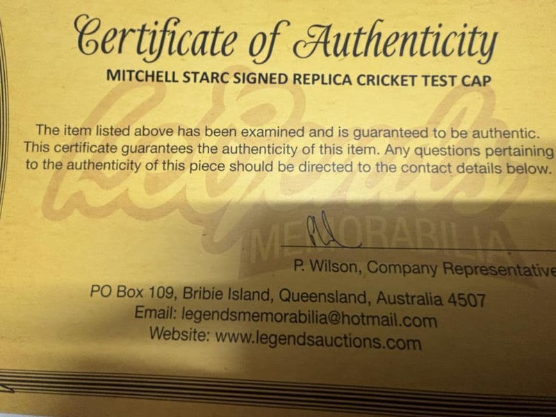 Mitchell Starc Personally Signed Replica Baggy Green Cricket Cap. The Item Is Accompanied By A Certificate Of Authenticity.