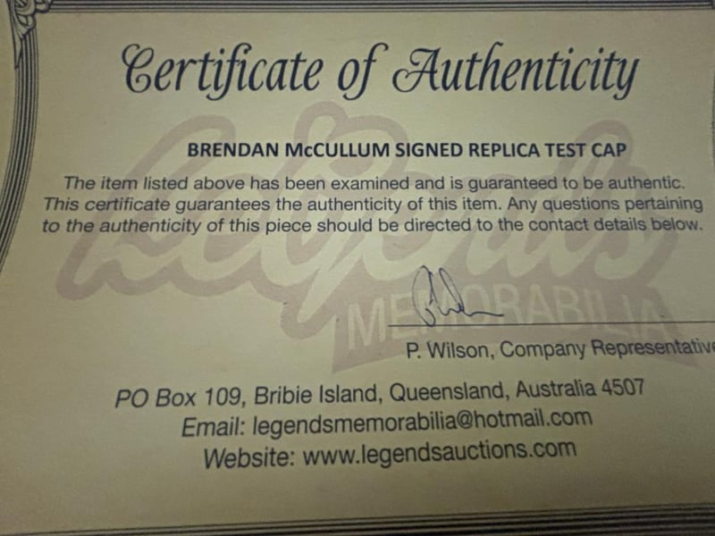 Brendan Mccullum Personally Signed Replica New Zealand Test Cricket Cap. The Inaugral Nz Cricket Hall Of Famer Is Still His Country'S Only Test Centaurian. The Item Is Accompanied By A Certificate Of Authenticity.