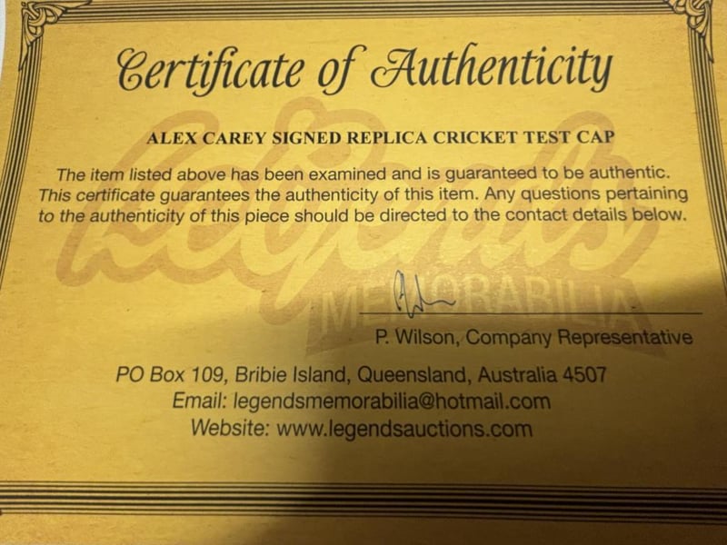 Alex Carey Personally Signed Replica Baggy Green Cricket Cap. The Item Is Accompanied By A Certificate Of Authenticity.