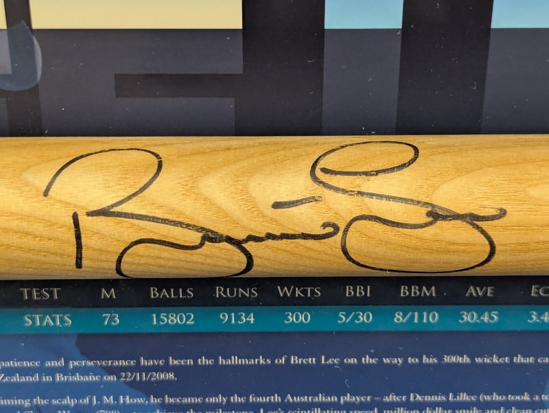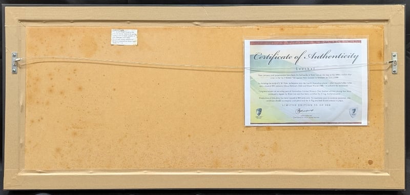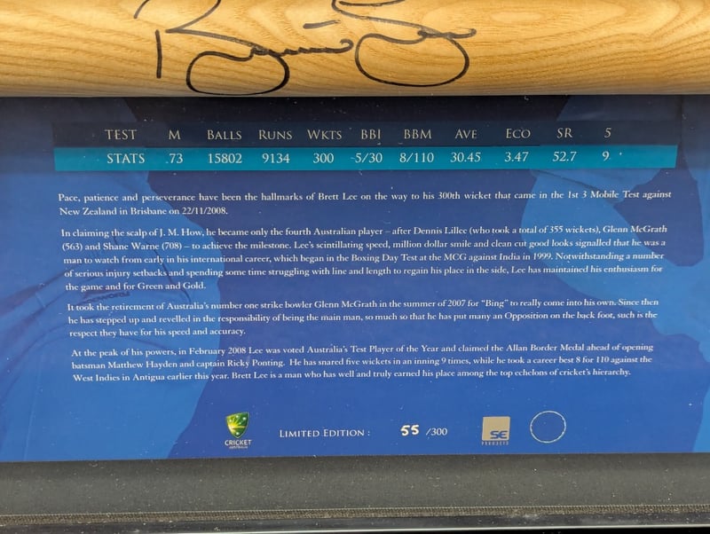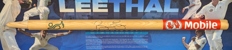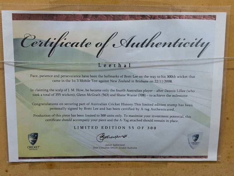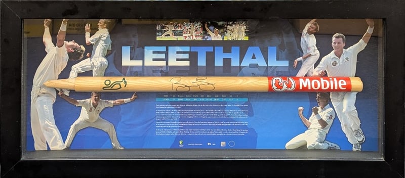 LIMITED EDITION 'LEETHAL' BRETT LEE SIGNED 2008/9 REPLICA 3 MOBILE STUMPItem Size: Height: 46cm, Width: 99cmItem In Frame, Edition Number: 55/300Includes Certificate Of AuthenticityBrett Lee Was The Fourth Australian To Claim 300 Test Wickets. He Joined The Illustrious Company Of Lillee, Mcgrath And Warne As The Only Australian Bowlers At The Time To Have Reached This Extraordinary MilestoneCondition: Good - Refer To Images585036+3